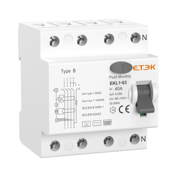 EKL6-100B B型電磁式漏電斷路器適?于交流50Hz,額定電壓?415V,額定電流至63A電路中,用于檢測交流漏電、脈動直流漏電、平滑直流漏電、復(fù)合波漏電和最高至1kHz?頻漏電。當(dāng)人身觸電或電路泄露電流超過規(guī)定值時(shí),漏電斷路器在極短的時(shí)間內(nèi)自動切斷故障電源,保護(hù)人身及用電設(shè)備安全,斷路器亦可在正常情況下作為線路的不頻繁切換操作之用。